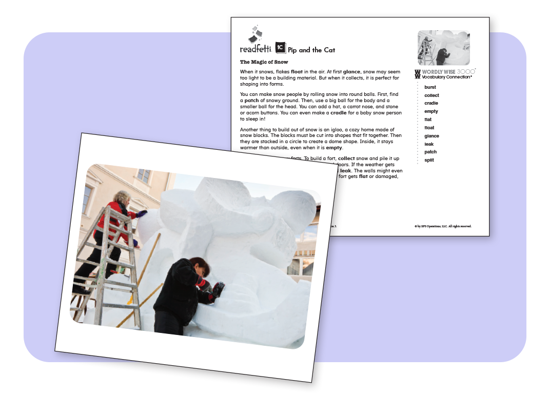 Each Readfetti Decodable Reader is paired with a Read Aloud Card that helps build vocabulary and background knowledge to promote oral language development.