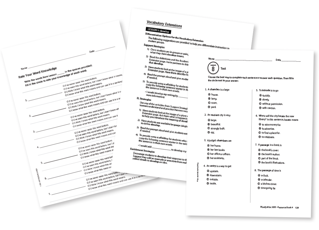 Wordly Wise features a variety of components that work together to help students learn 3,000 words most likely to appear in their reading and textbooks, and on state and national assessments.